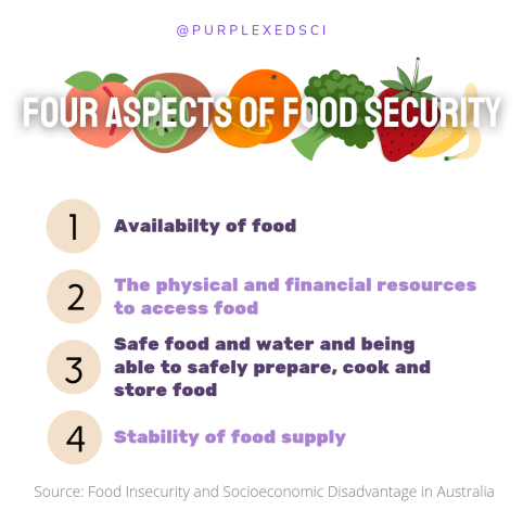 Food security is made up of four different components. This includes: