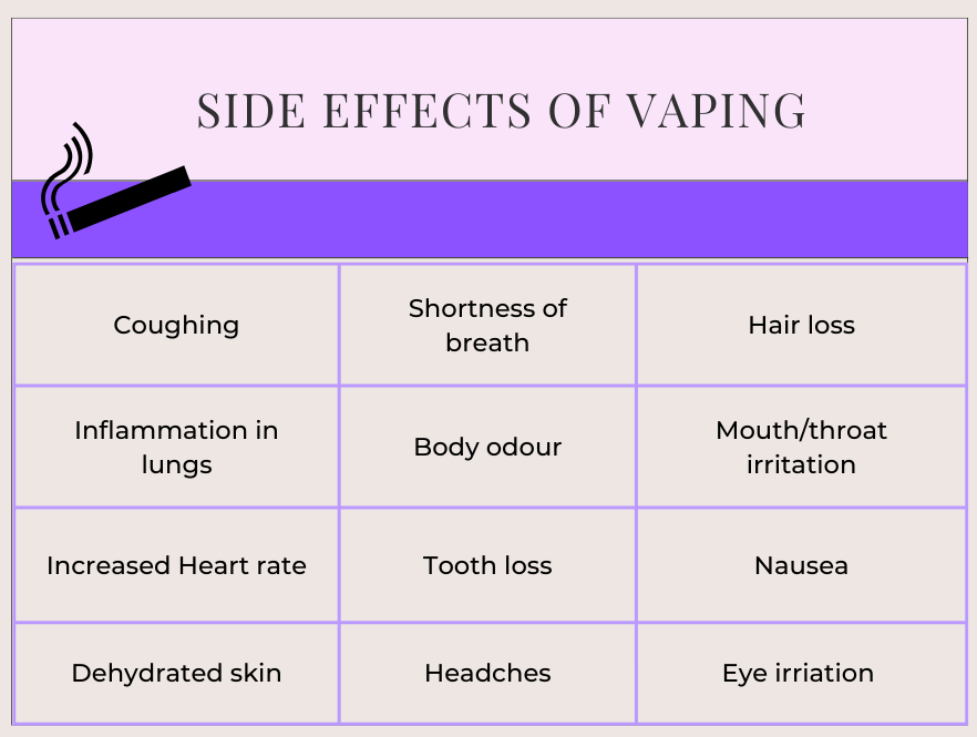 A list of side effects associated with vaping