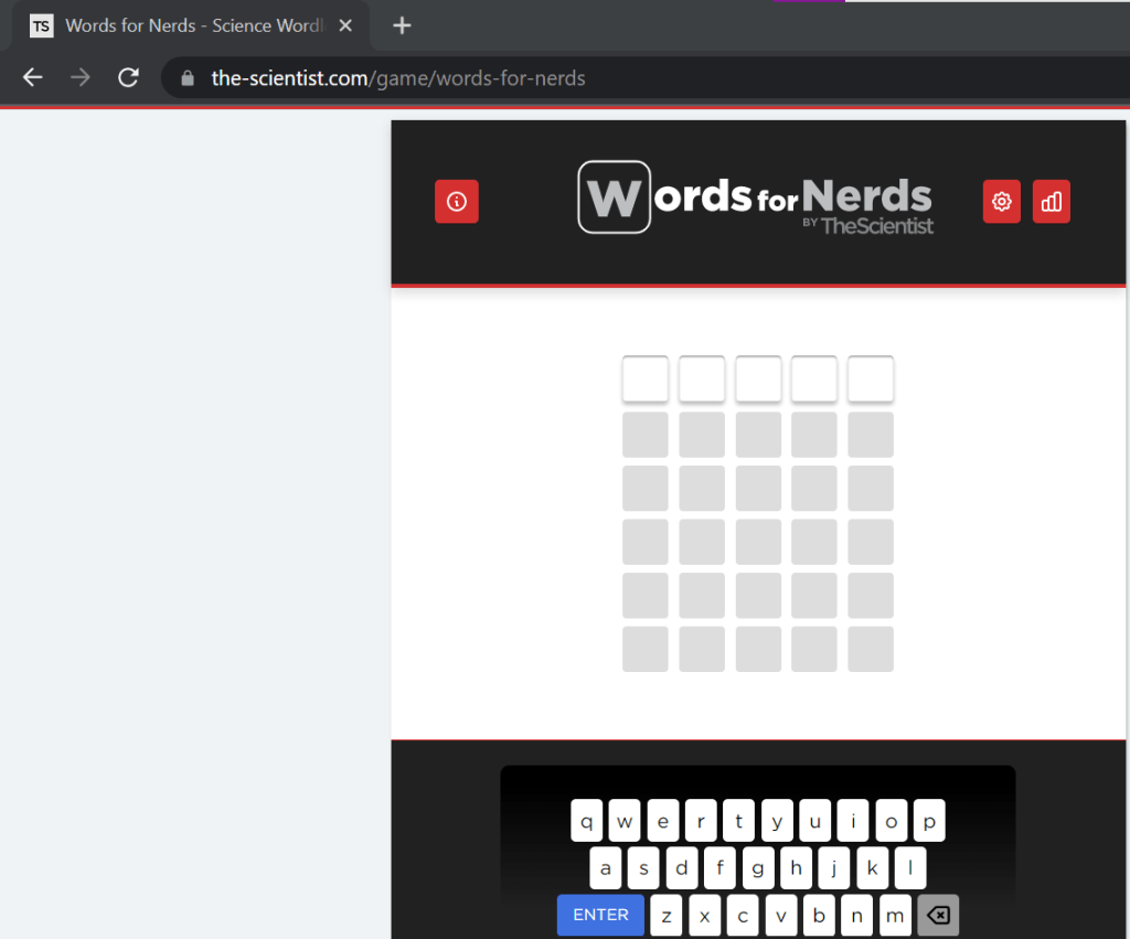 While the game is relatively simple to play, the website itself is cluttered and you have to keep scrolling up and down to see your guesses and they keyboard. In order to see both, I had to zoom out on the page in the web browser. Still, it’s a quick and easy way to build your science vocabulary and learn something new!