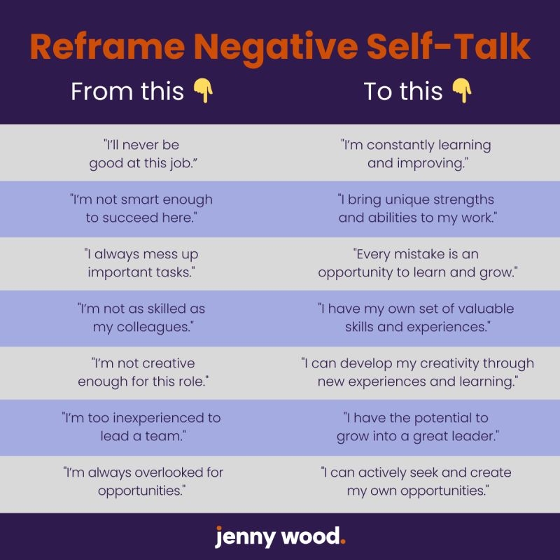 This article from Counselling Directory offers some ways to stop negative self-talk.